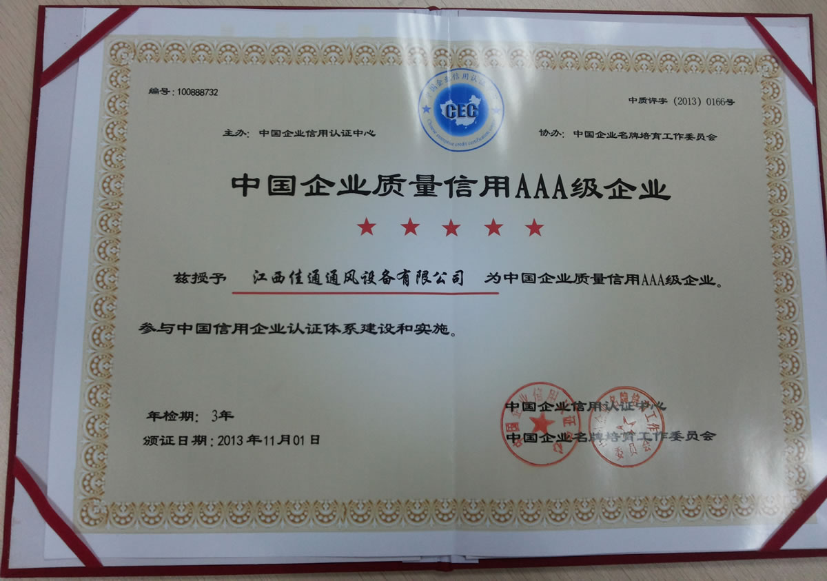 當(dāng)前位置:風(fēng)機(jī)廠家 > 資質(zhì)證書(shū) > 中國(guó)企業(yè)質(zhì)量信用AAA級(jí)企業(yè)