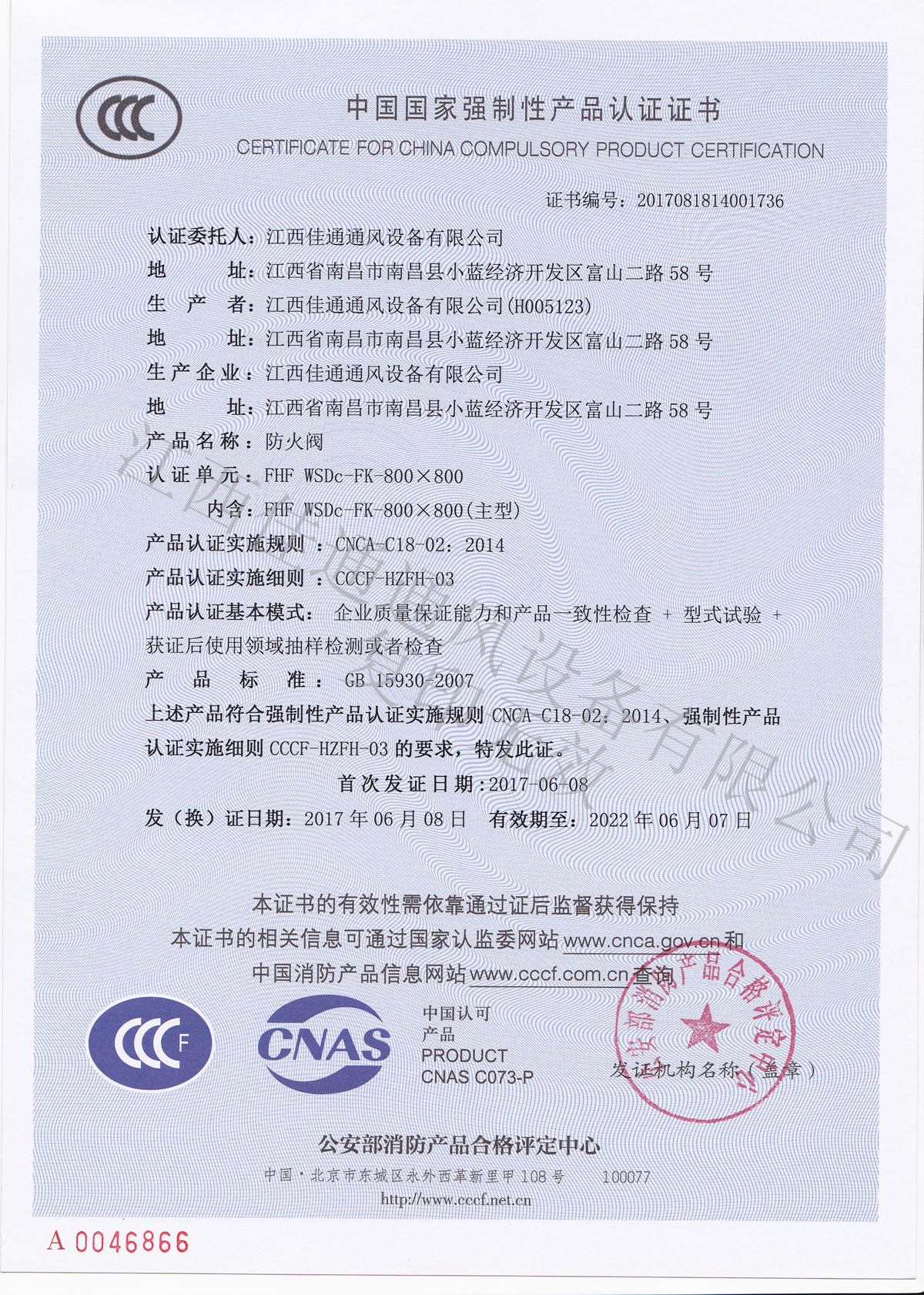 想了解更多請(qǐng)點(diǎn)擊===>>防火閥3C認(rèn)證證書 3C防火閥 防火閥