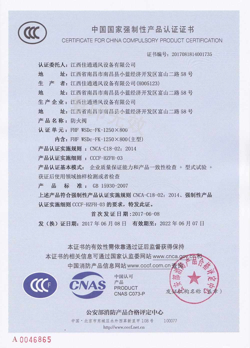 想了解更多請點(diǎn)擊===>>防火閥3C認(rèn)證證書 3C防火閥 防火閥