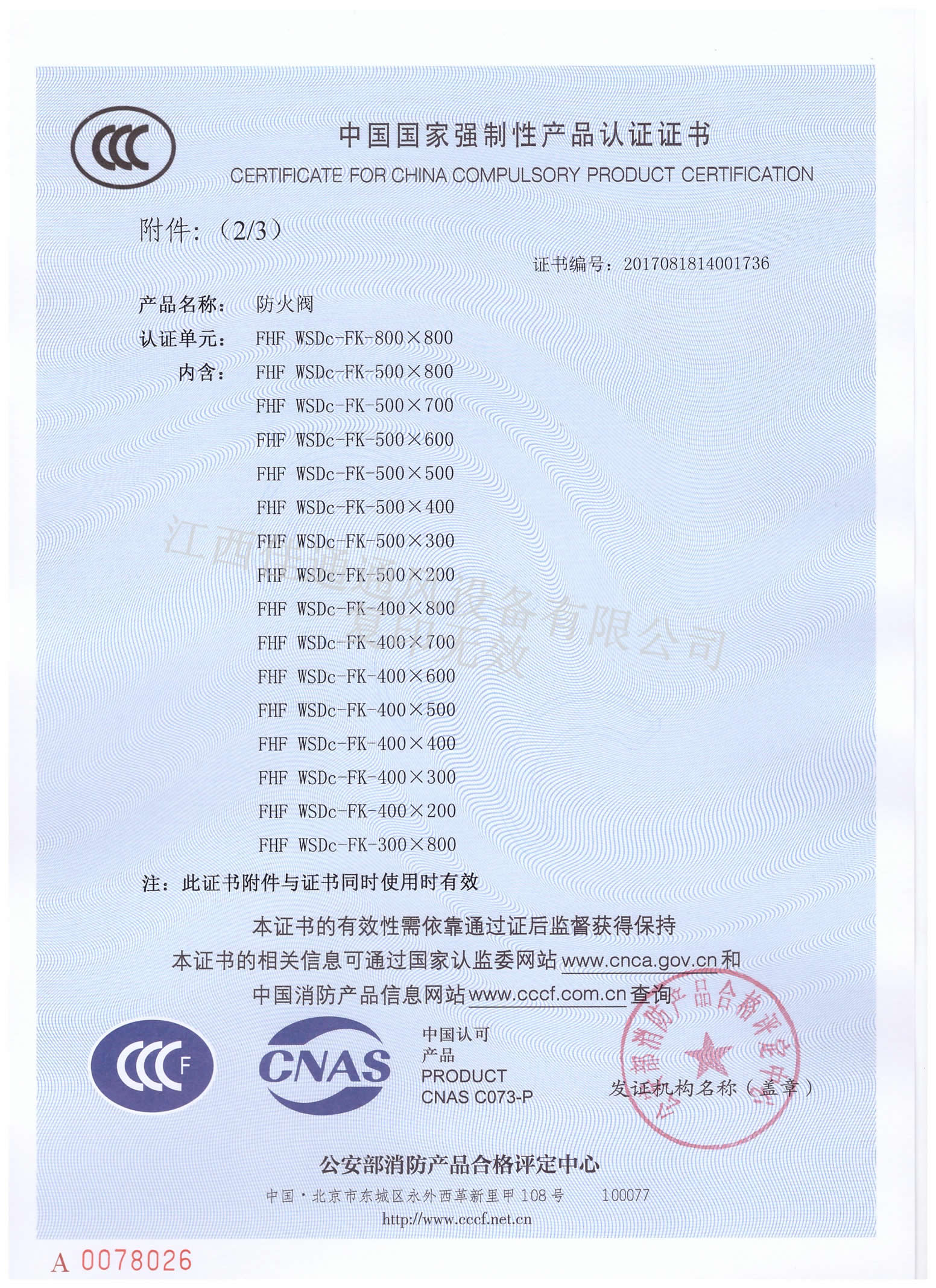 消防3C認(rèn)證證書防火閥800×800(分型2)