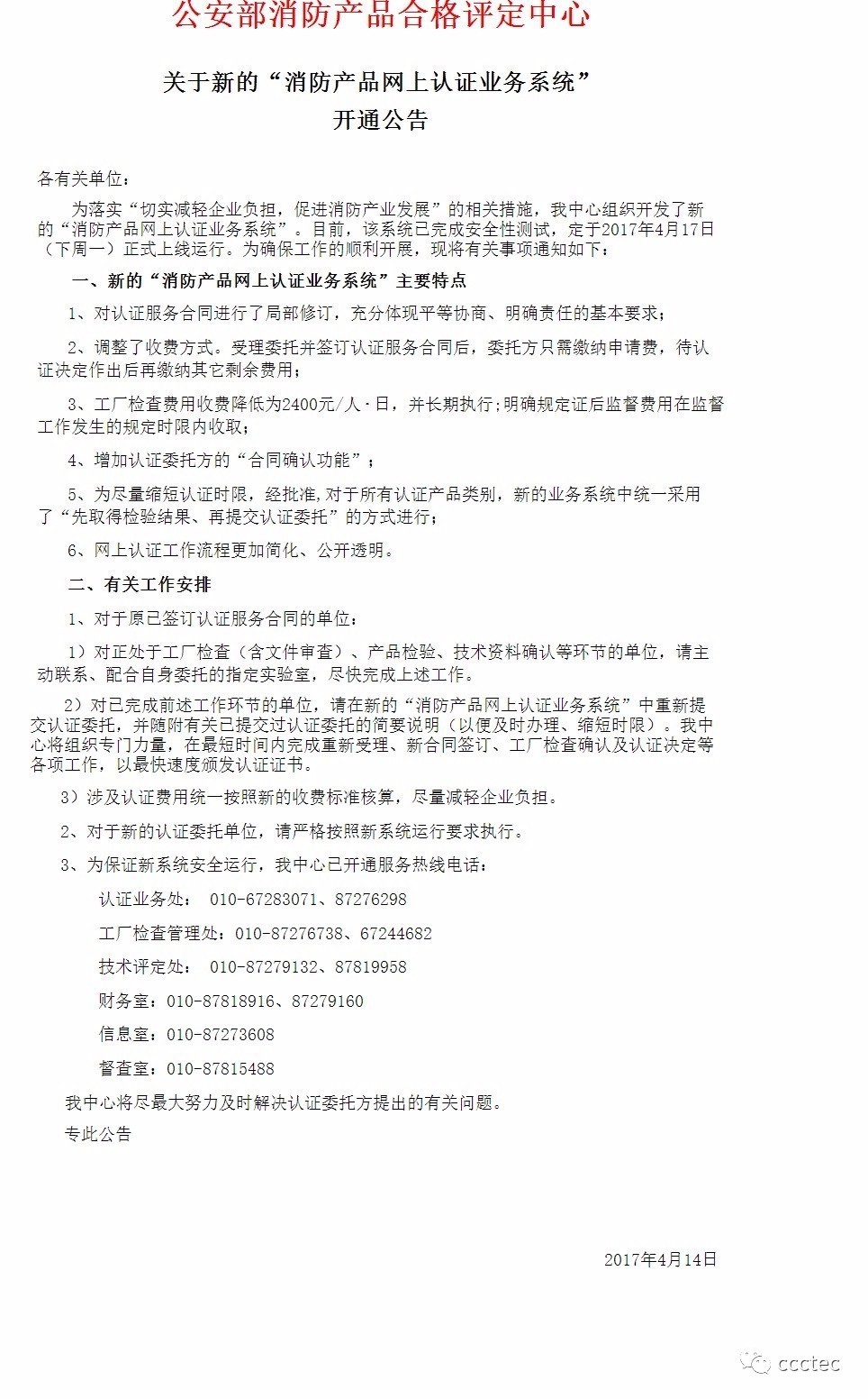 關(guān)于新的“消防產(chǎn)品網(wǎng)上認(rèn)證業(yè)務(wù)系統(tǒng)”開通公告