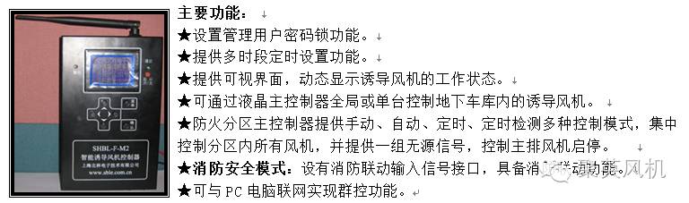 6、電氣及控制:在每臺誘導風機邊預留單相電源接線;控制方式有CO感測自控,時間編程自控、手動開關控制三種,可視室內情況選用,但任何一種控制方式最好與送、排風機連鎖運轉。