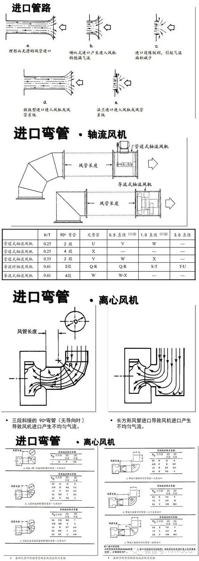 當(dāng)空間或其它因素迫使風(fēng)機(jī)的進(jìn)出口連接采用不良布置時,在設(shè)計計算中需考慮適當(dāng)?shù)挠嗔俊?/span>