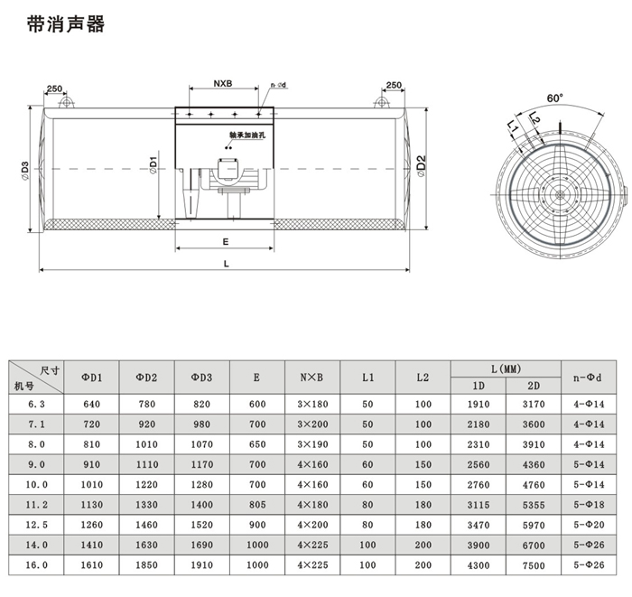 消聲器:消聲器長度通常為風機直徑的一倍,當噪聲要求高時,亦可以取風機直徑的二倍,消聲器與風機本體采用螺栓固定。